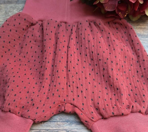 Wunderschöne kurze Pumphose "rot gepunktet" perfekt für den Sommer aus Musselin in der Größe 80/86.